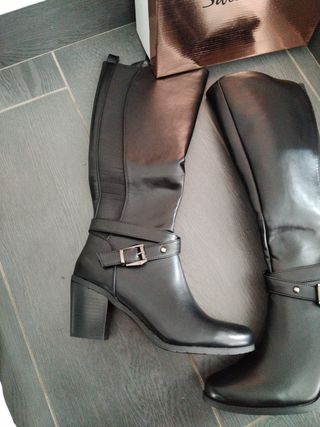 stivali neri alti di camoscio con cinturino. Tacco 9.5 cm, numero 38
