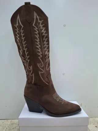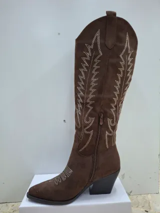 Eleganti stivali alti in camoscio sintetico, perfetti per completare ogni outfit. - Dettagli ricamati sul gambale. - Tacco squadrato e punta affusolata. - Zip laterale per una facile calzata.
