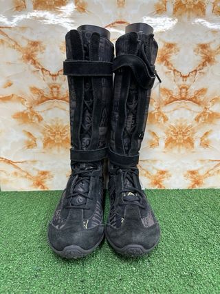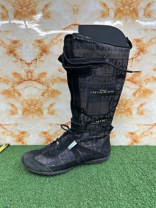 Stivali alti Nannini con una stampa unica su tutta la superficie. Perfetti per aggiungere un tocco di stile. - Stampa Easy Luv e Quiet Street. - Dettagli in camoscio nero. - Chiusura con lacci e velcro.