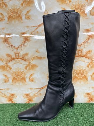 Eleganti stivali alti in pelle, perfetti per completare ogni outfit. - Materiale: vera pelle - Dettaglio intrecciato sul lato - Punta affusolata - Tacco a blocco