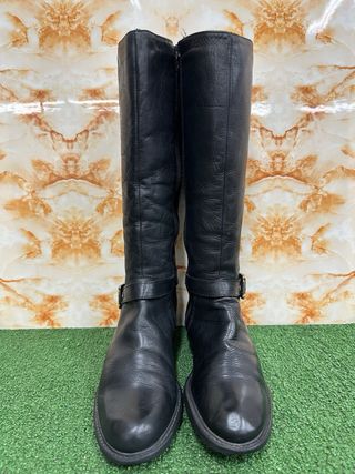 Eleganti stivali alti da donna. - Materiale esterno in similpelle. - Dettaglio fibbia alla caviglia. - Suola platform. - Zip laterale per facilitare la calzata. nuovo con scatola tg 39 lunghezza suola interna 26 cm circonferenza 38 cm tacco 4 cm con zip