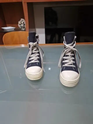 Stivaletti alti in pelle scamosciata neri con dettagli bianchi. - Chiusura con lacci bianchi. - Zip laterale. - Suola in gomma bianca.