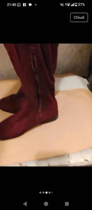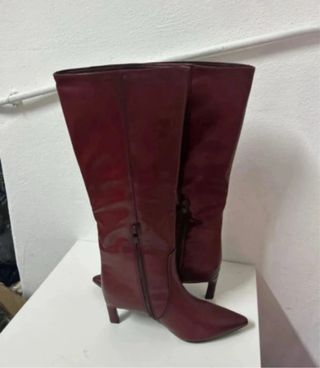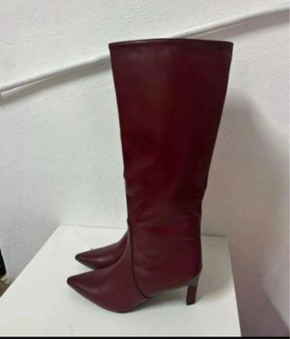Eleganti stivali alti da donna. - Colore bordeaux intenso. - Design a punta. - Tacco comodo. circonferenza 40 cm tacco altezza 7 cm lunghezza suola interna 25 cm nuovo con scatola calzata regolare