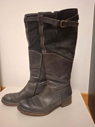 Stivali alti in vera pelle e nabuk Made in Italy Hand made - Design con lacci intrecciati. - Dettagli in pelle. - Tacco comodo. - Suola antiscivolo Pelle spazzolata per un effetto vintage. Perfetti per completare un look casual. Utilizzati poche volte