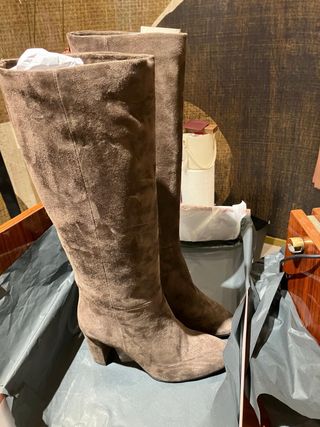 Eleganti stivali alti in camoscio. Con segno di usura come da dettaglio in foto, scatola e sacchetto originale - Materiale scamosciato. - Tacco largo e comodo. - Design classico e versatile.