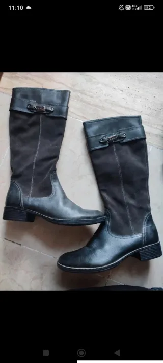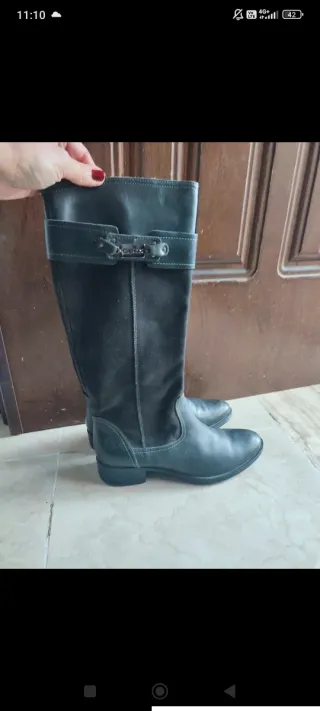 Eleganti stivali alti da donna Geox. - Realizzati in pelle di alta qualità. - Dettaglio con fibbia decorativa. - Inserti in materiale scamosciato. Indossati due volte sono perfetti