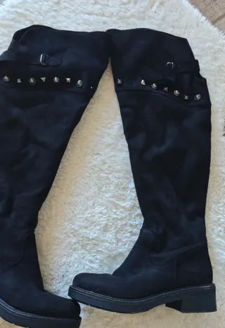 Eleganti stivali neri alti sopra il ginocchio. 1/2 zip laterale. Tessuto effetto camoscio. Misura 38.