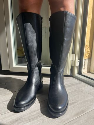 Eleganti stivali in pelle nera numero 36 in perfette condizioni e pronti all'uso. - Materiale : vera pelle - Chiusura : zip laterale - Suola : morbida gomma antiscivolo - Design : alto al ginocchio - Marca : Allegorie - Tacco : 4 cm Stivali alti con cerniera lunga e soletta comoda, usati pochissimo e molto ben conservati. Possibile spedizione con Wallapop o ritiro a mano in Torino Parco Ruffini.