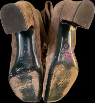 stivali da donna in pelle scamosciata colore marrone taglia 37 ( altezza massima cm 45 ) risultati ma in buone condizioni senza marca cerniera posteriore