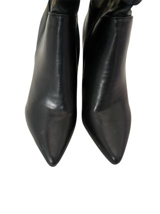Eleganti stivaletti da donna con punta affilata e tacco. - Materiale: ecopelle. - Design moderno e sofisticato. Presenta piccoli segni appena visibili che si coprono con la crema nera per le scarpe.