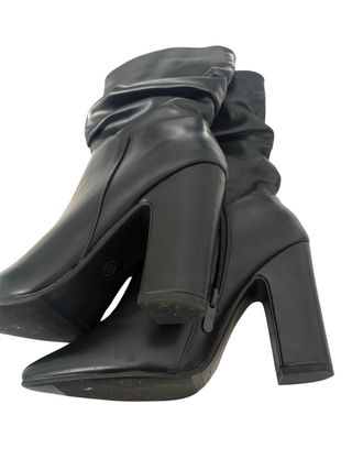 Eleganti stivaletti con tacco alto. - Materiale scamosciato. - Punta affusolata. - Design slouchy. Utilizzato una sola volta Completo di scatola e carta