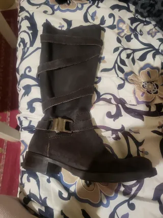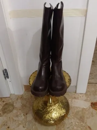Eleganti stivali alti in pelle. - Modello alto fino al ginocchio. - Dettaglio con fibbia. - Materiale in pelle liscia. - Indossati una sola volta causa numero sbaliato