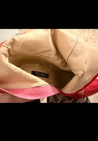 Stivali rossi con tacco. - Materiale esterno verniciato. - Fodera interna in tessuto.
