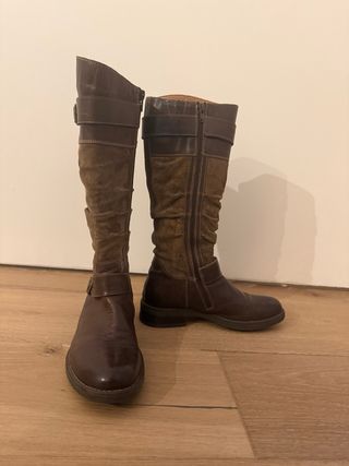 Vendo eleganti stivali alti al ginocchio firmati Unisa, modello Pilca/Lodo (codice A16). Realizzati in pregiata pelle martellata di colore marrone fango (Lodo), un tono versatile che si abbina facilmente a tutto.