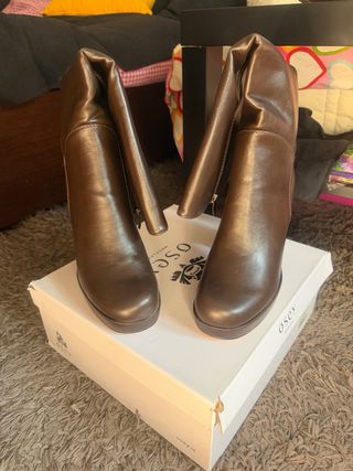 Eleganti stivali alti in ecopelle color marrone. - Tacco largo e plateau. - Dettaglio logo sul lato. Stivali alti ma comodi Osey In nappa sintetica Colore marrone Nuovi mai Indossati Ancora con la confezione originale Prezzo originale 129 euro come si vede dalla sua scatola Vendo per inutilizzo Numero 40 Nuovo mai usato