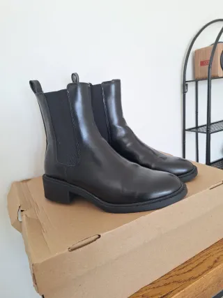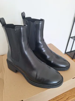 Eleganti stivali Chelsea in simil pelle. Indossati soltanto una volta, praticamente nuovi. - Design classico con inserti elastici laterali. - Tirante posteriore per facilitare la calzata. - Suola robusta e tacco basso.