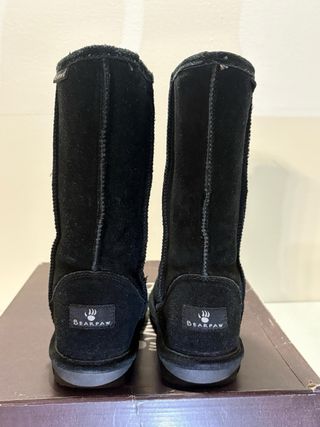 Stivali bassi Bearpaw, neri tipo Hugg, con pelo intern e camoscio esterno, Numero 35 anche se la scatola indica 36, usati una volta praticamente nuovi vedi foto suola. Un vero attare