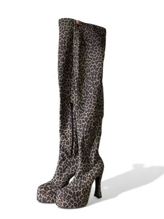 Stivali Plateau Leopardati Al Ginocchio Y2K