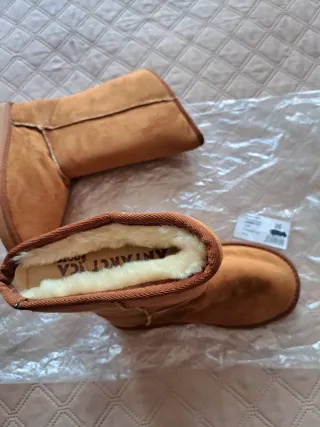 Caldi stivali in materiale simil camoscio marrone. Misura 36, ma va benissimo per 35. - Fodera interna morbida. - Suola in gomma resistente. - Design confortevole.
