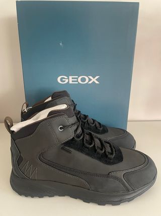 Stivali in camoscio Geox in colore nero, completamente nuovi. Design moderno ed elegante. Materiale in camoscio morbido al tatto. Chiusura con lacci per un'aderenza sicura. Suola robusta per una maggiore durabilità.