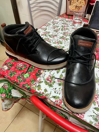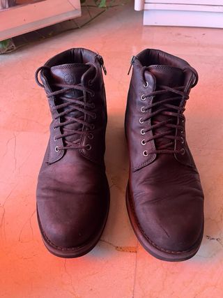 Stivali a altezza media per uomo. Chiusura con lacci. Dettaglio di cuciture. Design tipo mocassino. Taglie 43 / 44