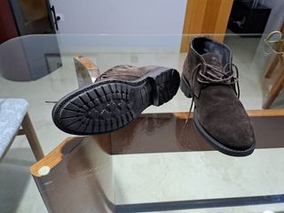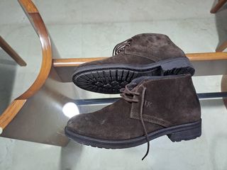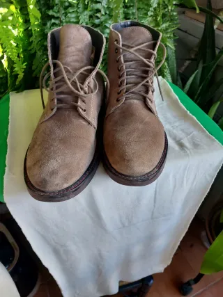 Stivali in pelle scamosciata per uomo in tonalità marroni. Un calzatura versatile e con stile. Non è marrone, ma una miscela di grigio, direi come cenere. - Materiale esterno in pelle scamosciata. - Chiusura con lacci. - Suola in gomma.