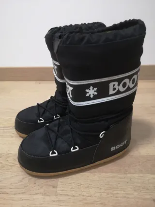Stivali con tacco in plastica da uomo. La taglia è un po' piccola. Marca Boomerang. Colore nero.