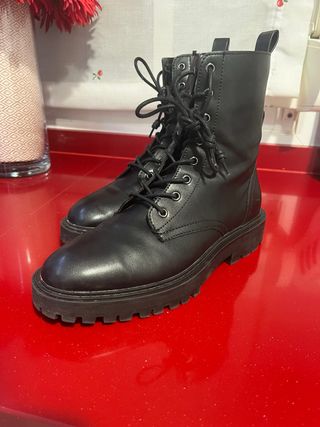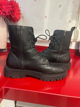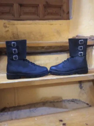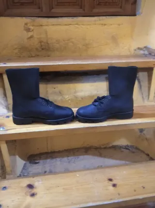 Stivali in stile militare per donna/uomo. - Chiusura con lacci e cerniera. - Suola spessa e resistente. - Design a stelo medio. - Buone condizioni.