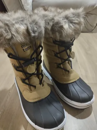 Stivali invernali con interno in pelliccia sintetica. - Esterno in tessuto e materiale sintetico. - Suola in gomma antiscivolo. - Chiusura con lacci e velcro.