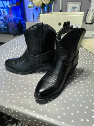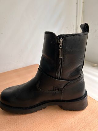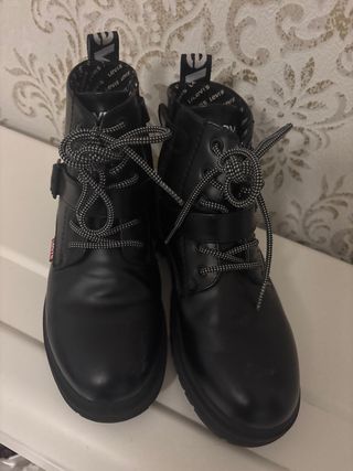 Stivali del marchio Levi's in colore nero e taglia 35. Hanno lacci e un design moderno. Chiusura con lacci, dettaglio di fibbia, suola in gomma.