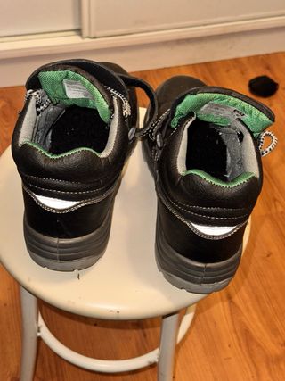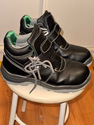 Stivali di sicurezza in pelle nera. - Chiusura con velcro. - Dettaglio riflettente sul tallone. - Suola in gomma resistente.