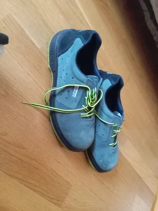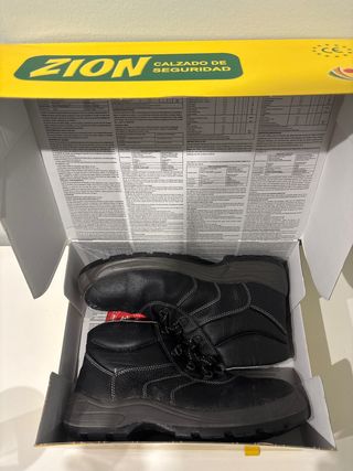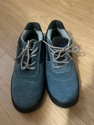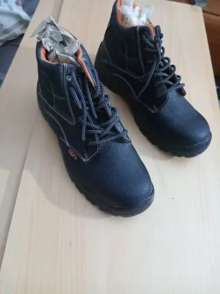 Stivali di sicurezza del marchio Adeepi in taglia 43. Utilizzati un solo giorno per necessità in quanto non avevo i miei. Combinano materiali resistenti per proteggere i tuoi piedi. Design in blu e nero, chiusura con lacci, punta rinforzata.