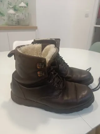 Stivali in pelle UGG taglia 44 per uomo. - Materiale esterno in pelle. - Fodera interna in montone. - Chiusura con lacci. - Suola in gomma resistente.