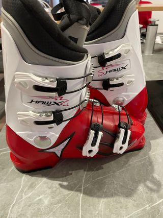Stivali da sci Atomic Redster JR 4 per bambini. Colore rosso e nero. Chiusure con fibbia. Taglia 24.5.