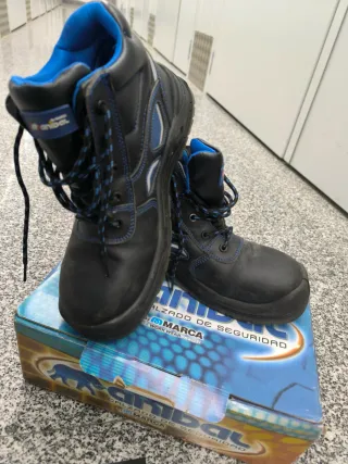 Stivali di sicurezza del marchio Anibal. Colore nero con dettagli in blu. Taglia 42.