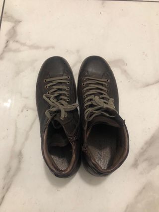 Taglia 43 1/2 , qualche segno come da foto, difetto sul lato interno stivale sx (vedi immagine, non ne compromette l’uso, c’e’ il doppio strato di cuoio) Consegna a mano Bologna e dintorni, fuori Bologna e in altre citta', da definire