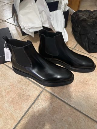 Eleganti stivaletti Prada in pelle nera. - Design Chelsea boot. - Elastici laterali. - Suola in gomma.