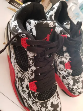 Bellissime scarpe Jordan con un design unico. - Fantasia in bianco e nero. - Dettagli rossi. - Lacci neri.