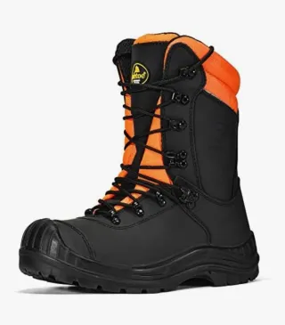 Stivali da lavoro alti Safetoe, ideali per la protezione. - Colore nero e arancione. - Chiusura con lacci. - Punta rinforzata.