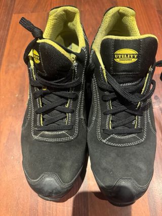 Scarpe antinfortunistiche Diadora. - Tomaia in pelle scamosciata nera. - Dettagli gialli. - Suola in gomma. - Sistema Net Breathing System sul tallone.