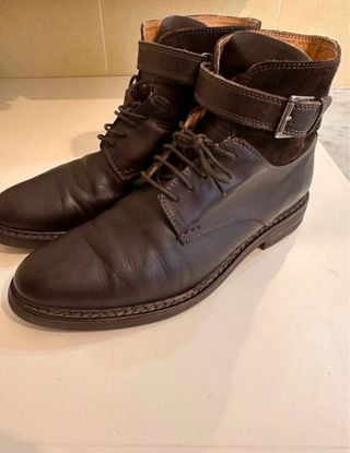 Stivaletti Massimo Dutti Uomo – Pelle Marrone con Inserti in Camoscio, Taglia 43 Stivaletti da uomo firmati Massimo Dutti, realizzati in vera pelle marrone con dettagli in camoscio e cinturino laterale. Un modello robusto ed elegante, perfetto per l’autunno/inverno, che unisce stile e funzionalità. 🔹 Tomaia in pelle liscia con inserti in camoscio 🔹 Dettaglio cinturino con fibbia decorativa, look grintoso e raffinato 🔹 Interno foderato per massimo comfort 🔹 Suola in gomma con battistrada antiscivolo ✅ In ottime condizioni generali, usati con cura ✅ Nessun difetto, solo segni normali di utilizzo