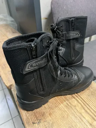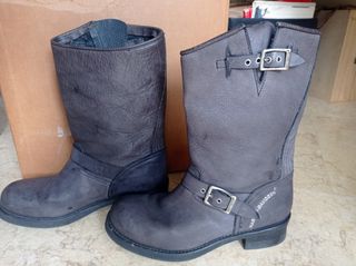 Vendo un paio di stivali da moto in pelle, in ottime condizioni. Sono neri con dettagli argento. - Stivali alti, allacciati sul retro. - Realizzati in pelle resistente. - Suola robusta e antiscivolo. - Protezioni rinforzate sulle caviglie.
