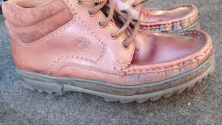 Scarponcini da uomo, numero 41, colore marrone. Sono in buone condizioni, presentano qualche segno di usura. - Pelle marroni - Allacciatura con lacci - Suola in gomma