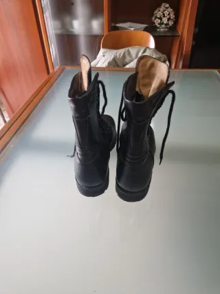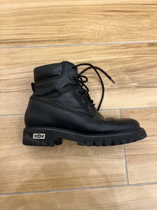 Anfibi in pelle nera. - Modello stringato. - Suola in gomma.