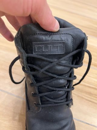 Anfibio uomo in pelle nera. Un classico intramontabile per completare ogni outfit. - Tomaia in pelle. - Chiusura con lacci e zip laterale. - Suola carrarmato. - Logo Cult sul lato.