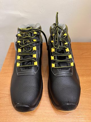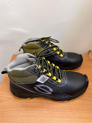 Scarpe antinfortunistiche nuove, perfette per la sicurezza sul lavoro. - Design moderno con dettagli gialli. - Tomaia in materiale resistente. - Suola robusta per un'ottima aderenza.