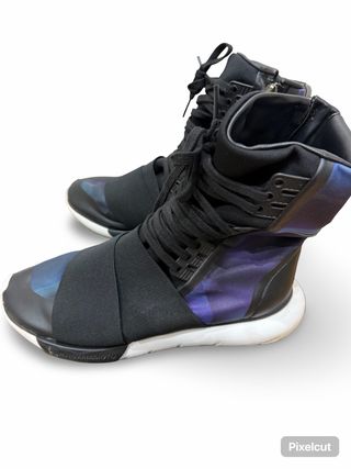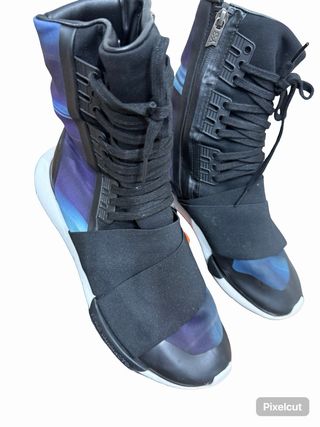 Scarpe alte Y-3 Qasa Boot con un design unico. - Tomaia in tessuto e pelle. - Chiusura con lacci e zip laterale. - Fascia elastica frontale. - Suola in gomma bianca.