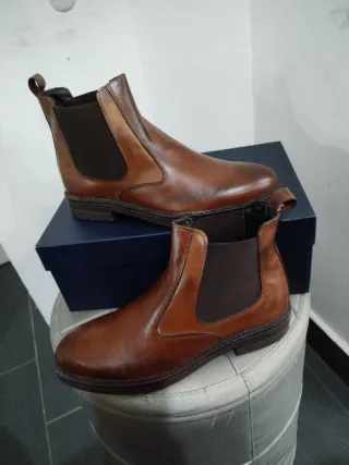 Eleganti stivaletti da uomo in pelle, perfetti per completare ogni outfit indossati 1 volta. Per me risultano grandi. - Design stringato con lacci. - Dettagli brogue traforati sulla punta. - Suola robusta e confortevole. Calzano più grandi. Ottimi per un piede 42 - 42,5.
