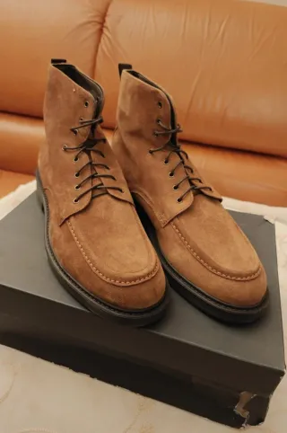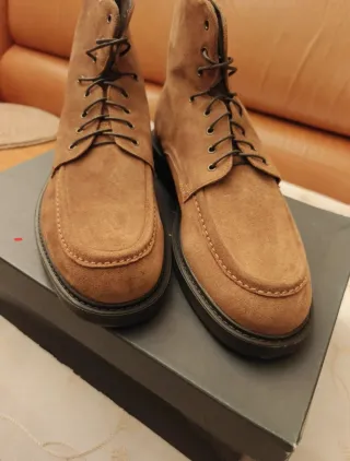 Elegante stivaletto da uomo in camoscio. Perfetto per completare un look casual o più ricercato. - Materiale scamosciato. - Design stringato. - Suola in gomma.