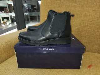 Elegante stivaletto da uomo Mauri Moda. - Materiale in pelle nera. - Design Chelsea boot con inserti elastici laterali. - Suola in gomma resistente. - Zip laterale per una facile calzata.